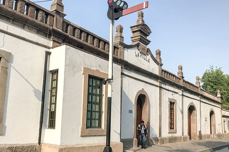 Frente a la Basílica, nació un mercado y alrededor el pueblo. Frente al mercado había una pequeña construcción metálica con techo y bancas que era la estación del tren de vía angosta cuya vía venía desde el Puerto de Veracruz hacia la Capital. Pasaba por la Estación Villa de Guadalupe y se entraba a la Ciudad por una calle paralela a la Calzada de Guadalupe. Esta Calzada venía de Peralvillo a la Basílica y era el paso peatonal que usan peregrinos y visitantes de tal templo. La calle paralela por donde entraba la vía del tren de Veracruz se llamaba o llama Misterios y conducía al tren de vía angosta hasta su terminal llamada Estación de San Lázaro. En ese lugar, desaparecidas vías y estación ahora, se encuentra la Cámara de Diputados.