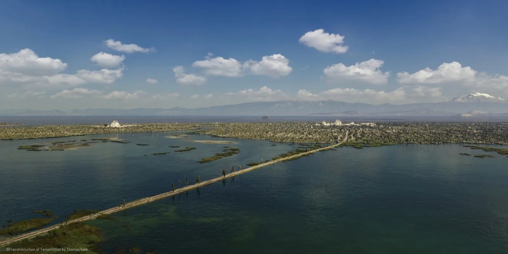 Se recuerda que en la zona había dos grandes lagos separados por una barda: del lado oriente hacia Texcoco, un lago salado del mismo nombre y, del lado poniente, el lago dulce al que aquí hice referencia.